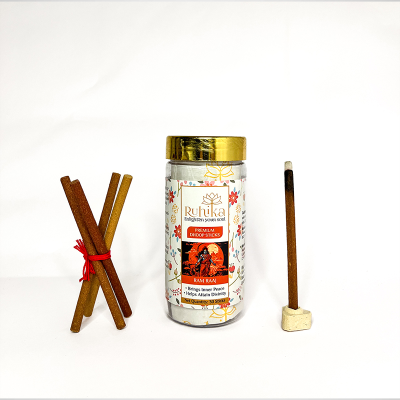 Ram Raaj Dhoop is crafted as a tribute to Lord Ram’s ideals of peace, righteousness, and prosperity. The fragrance is a devotional blend of sandalwood, florals, and mild spices, offering a grounding yet uplifting aroma. Burning this dhoop purifies the atmosphere, enhances concentration, and fills the space with spiritual energy. In Indian traditions, Ram Raajsignifies the golden era of harmony and justice, making this fragrance ideal for sacred ceremonies, bhajans, and temple offerings. Its aroma helps calm the mind, invoke divine blessings, and establish an aura of devotion and discipline in the home.